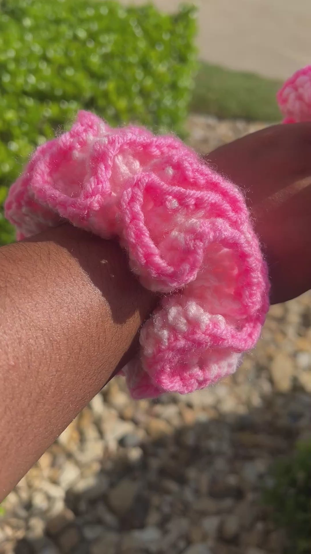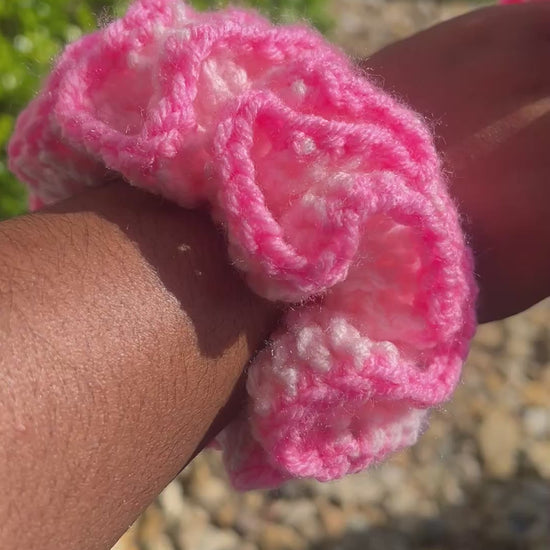 Say goodbye to boring hair ties and hello to this handmade crochet hair scrunchie! Perfect for adding a pop of personality to any hairstyle. Keep your hair up with style and flair.